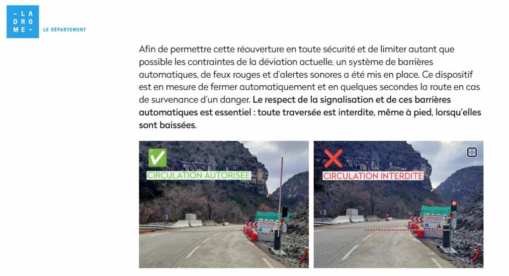🚦Le dispositif est couplé à des feux bicolores, 2 sirènes et des barrières permettant la coupure automatique de la route en cas d’alerte. 🔊