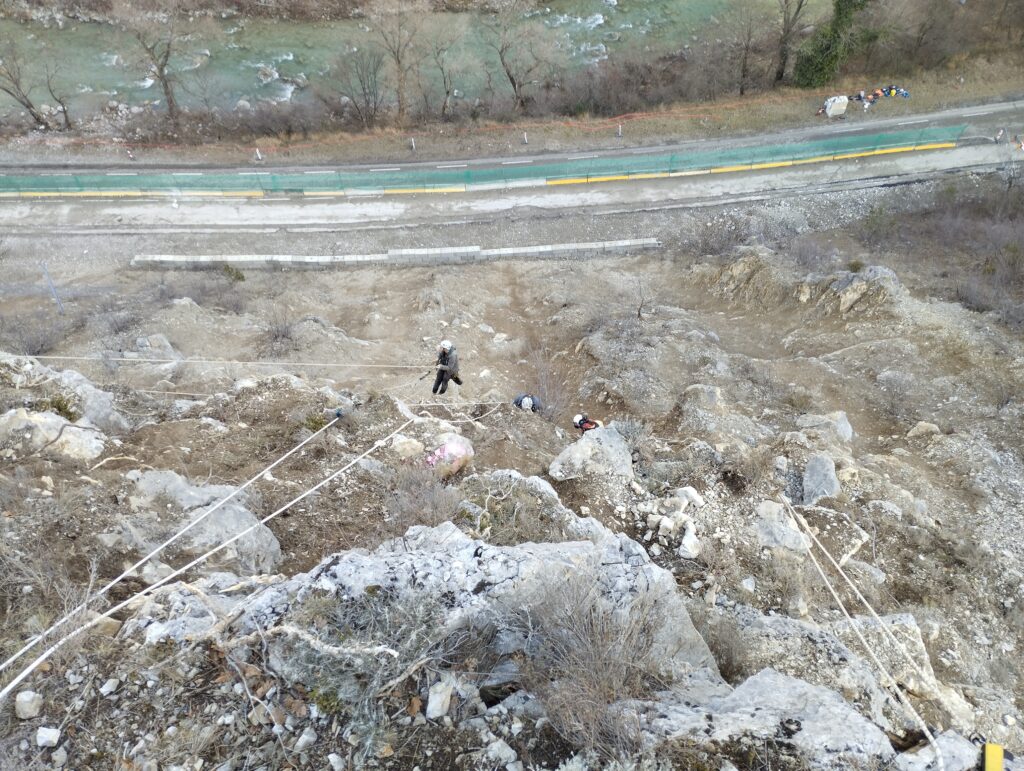 Dans la Drôme, suite à des travaux de confortement de masse rocheuse, des blocs présentant un risque de chute vers la route départementale 94 située en contrebas ont été identifiés. ⚠️